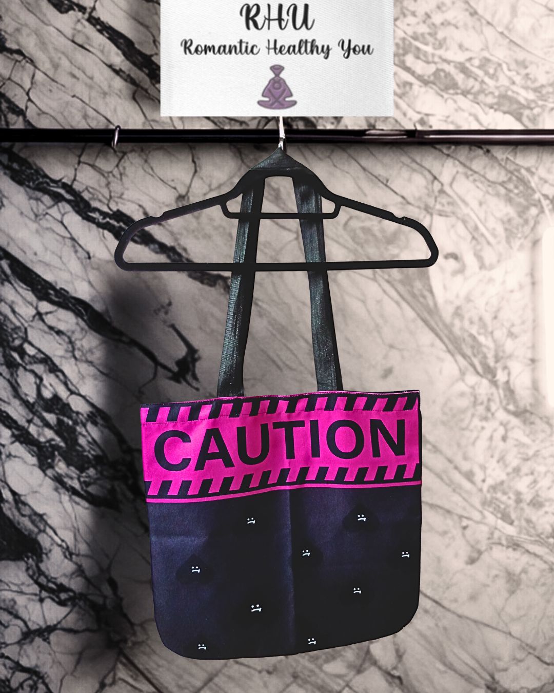 CAUTION Hearts Design Lightweight Shopping Tote Bag