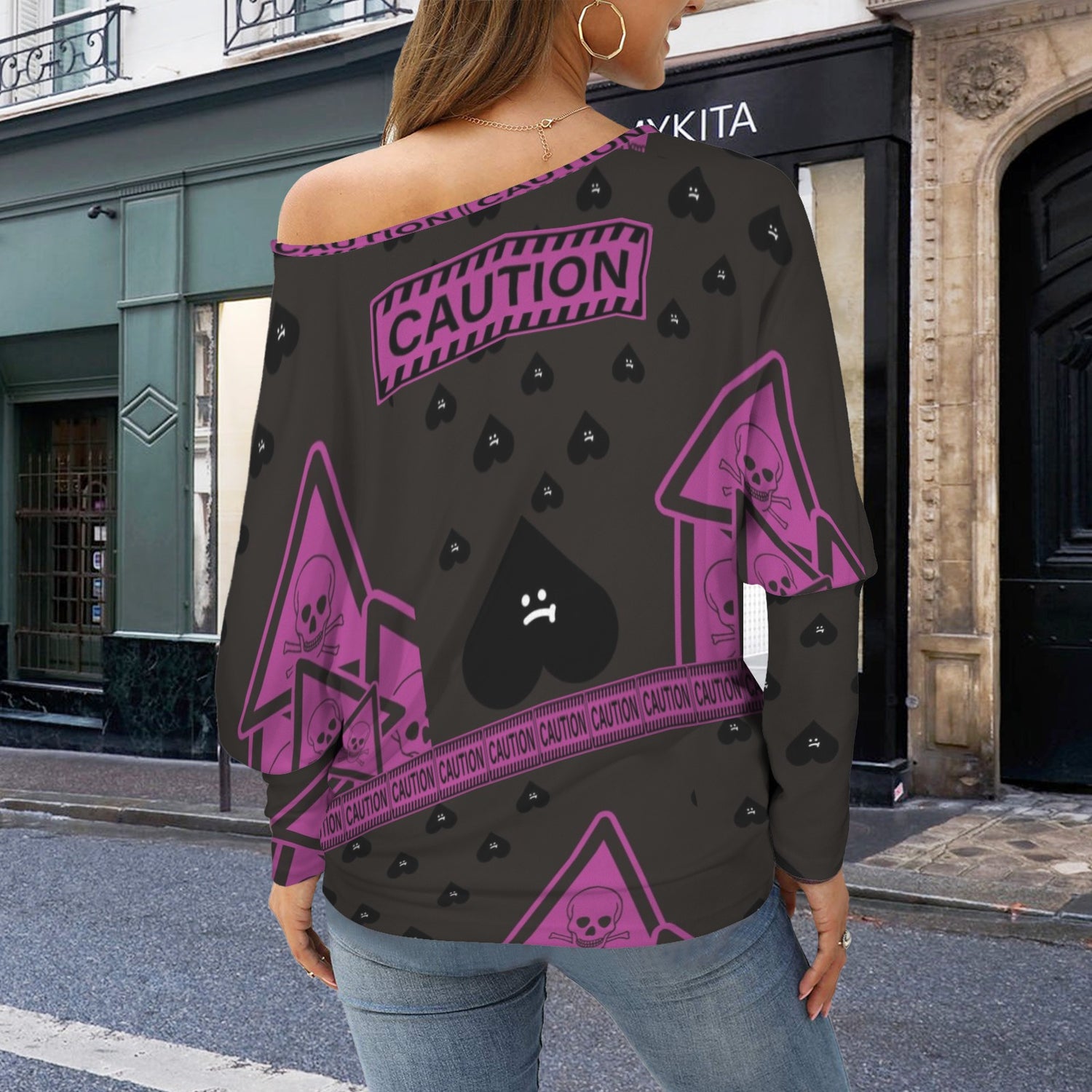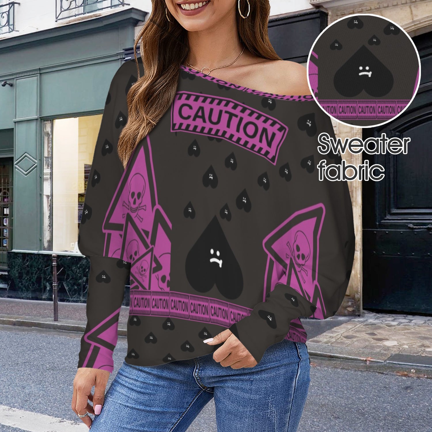 Caution Off Shoulder Sweater