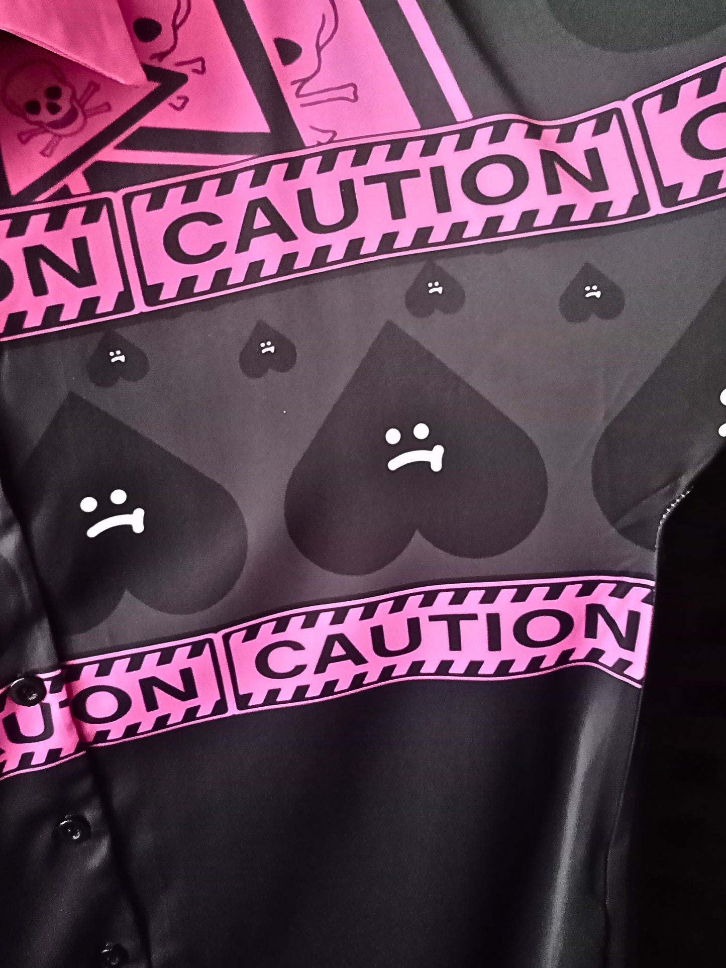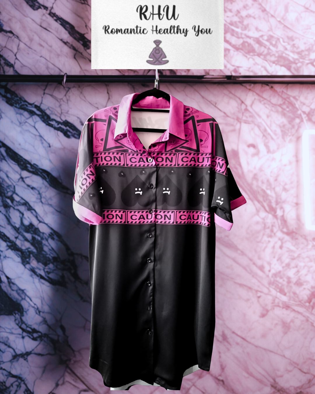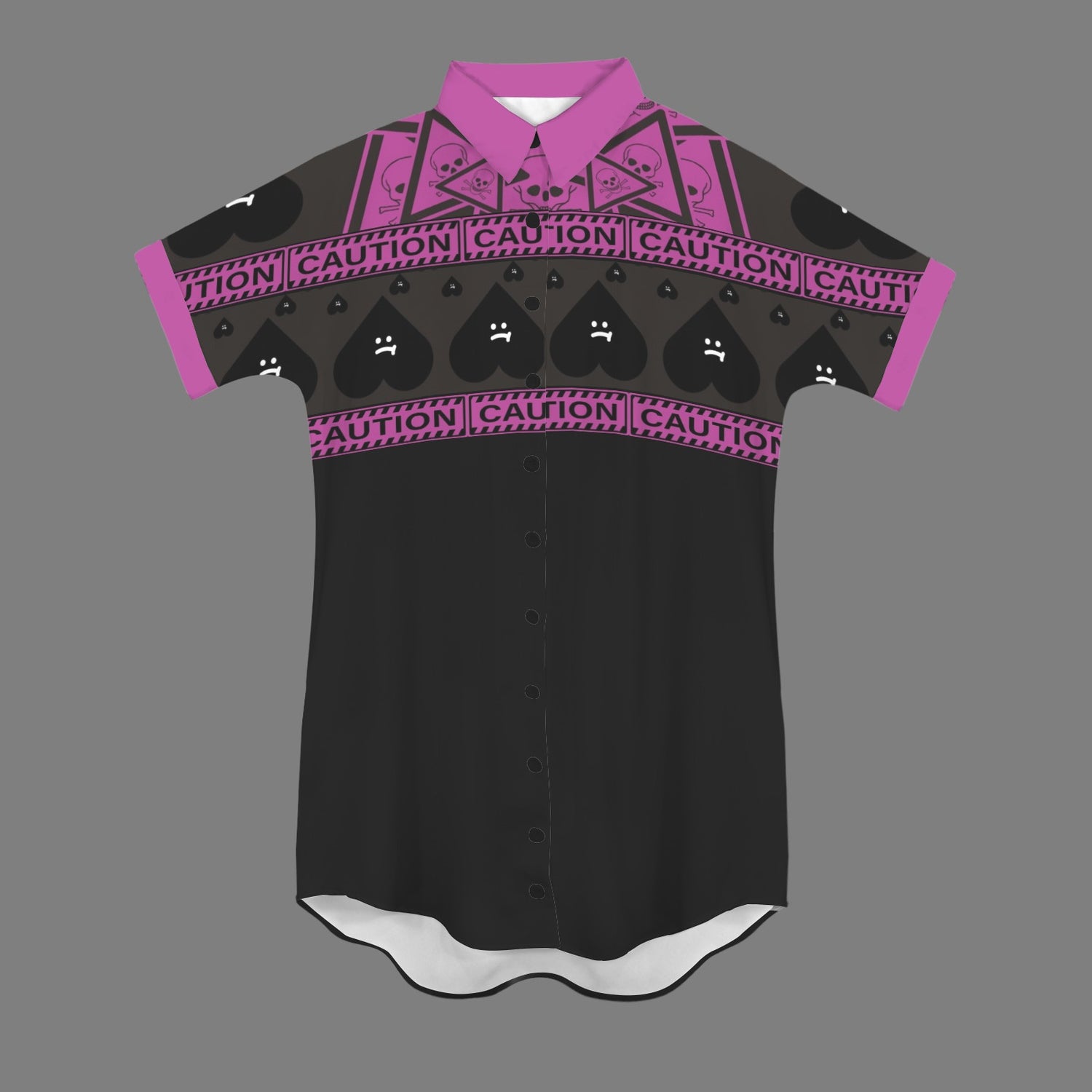 Pinky Caution Hearts T-Shirt Dress Lapel Buttons