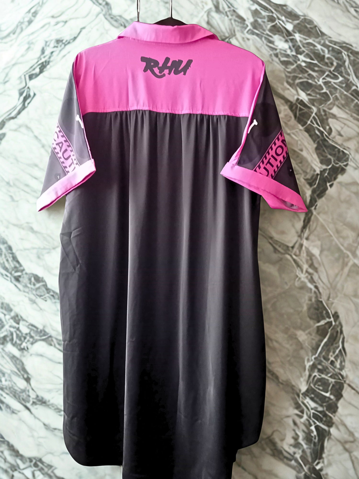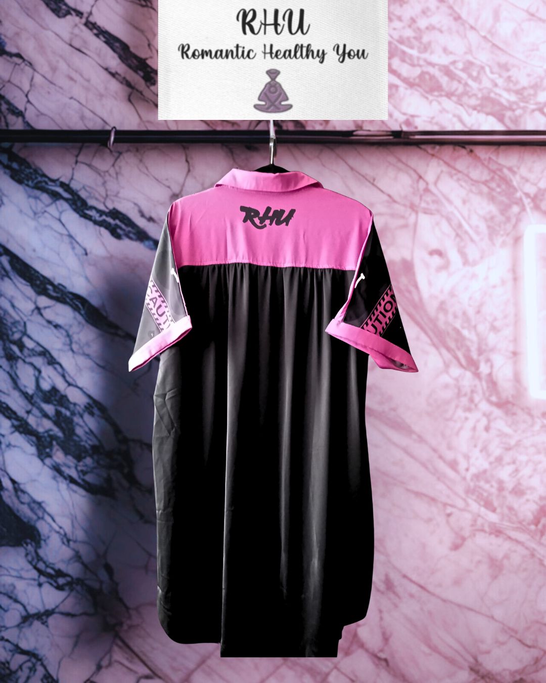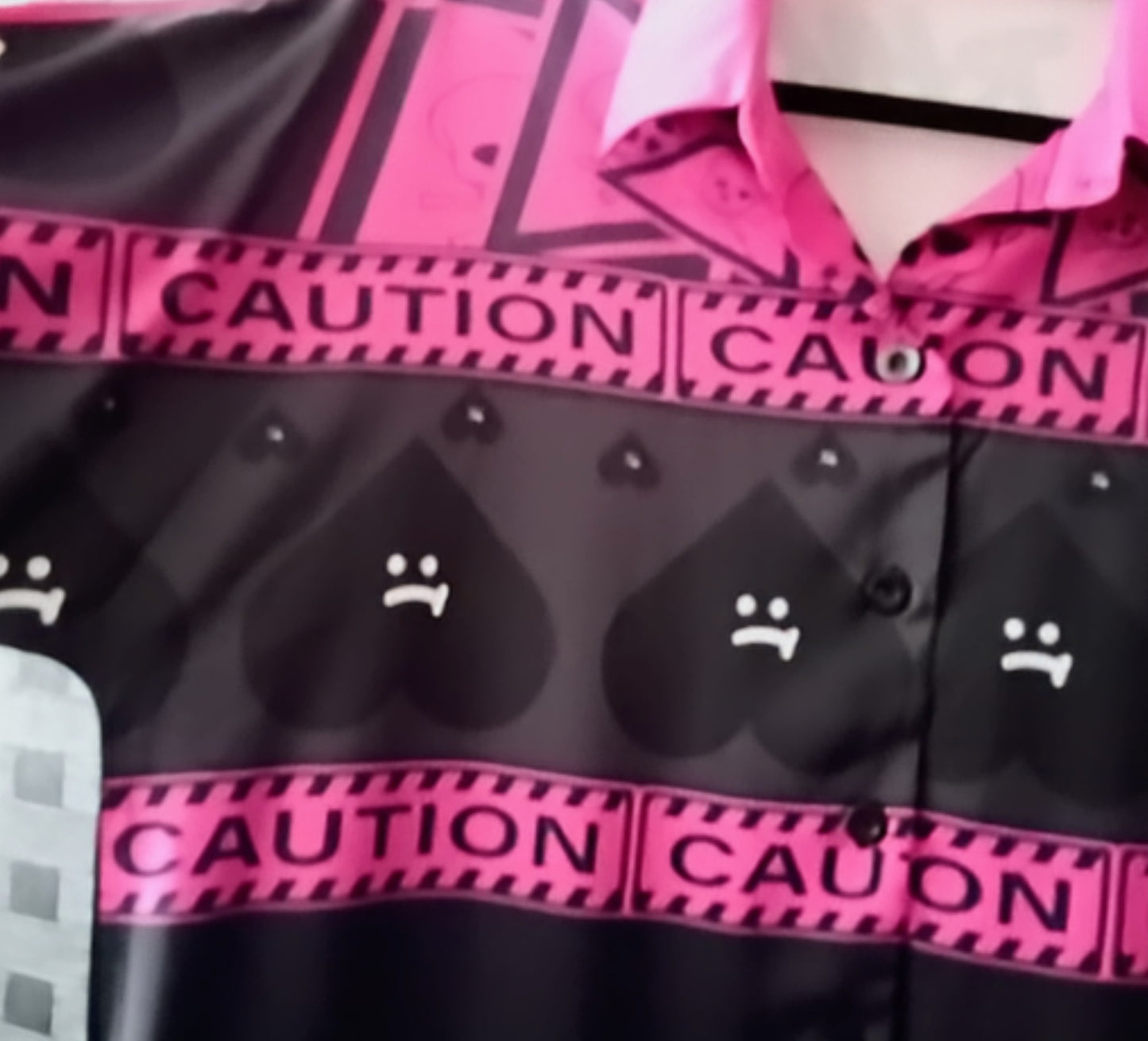 Pinky Caution Hearts T-Shirt Dress Lapel Buttons