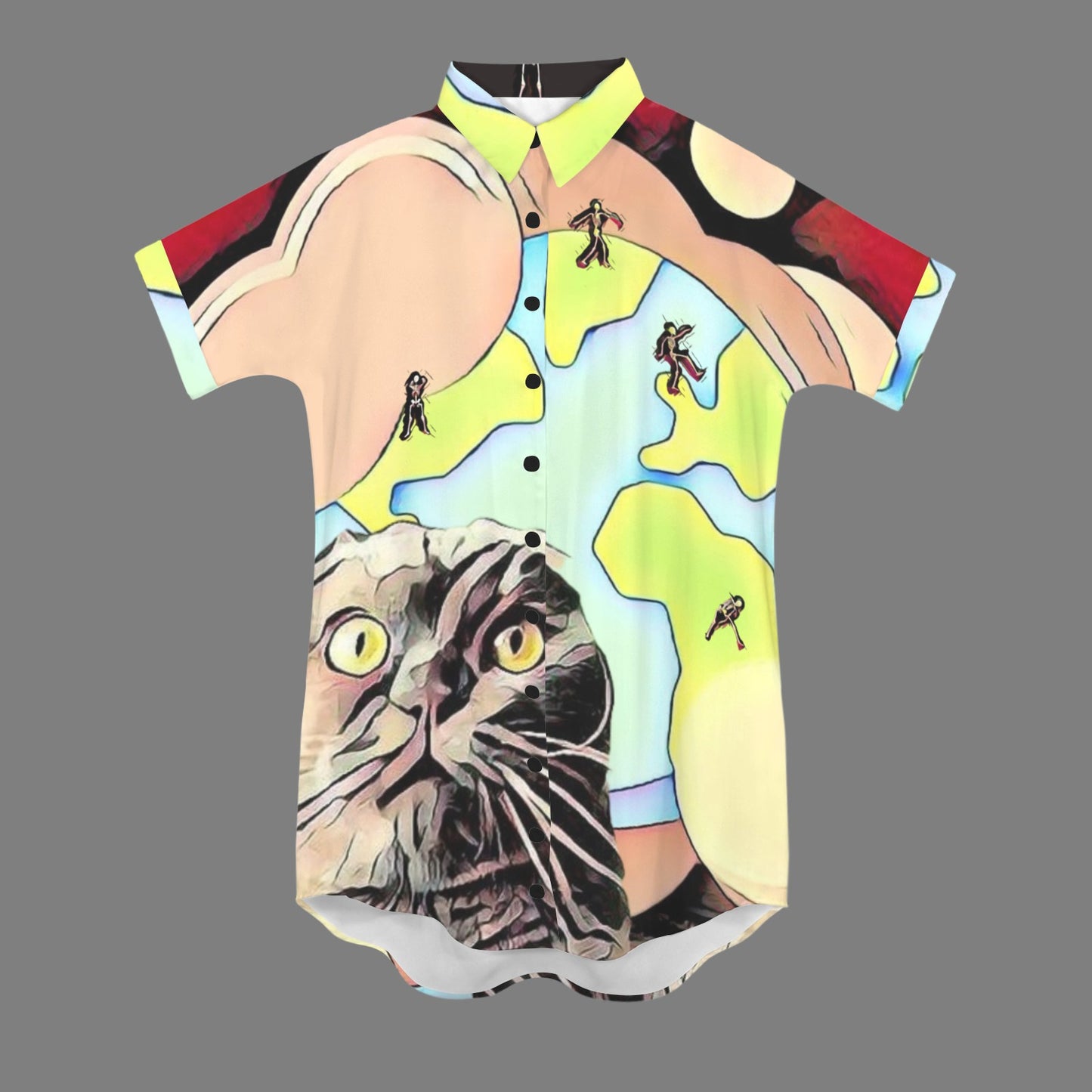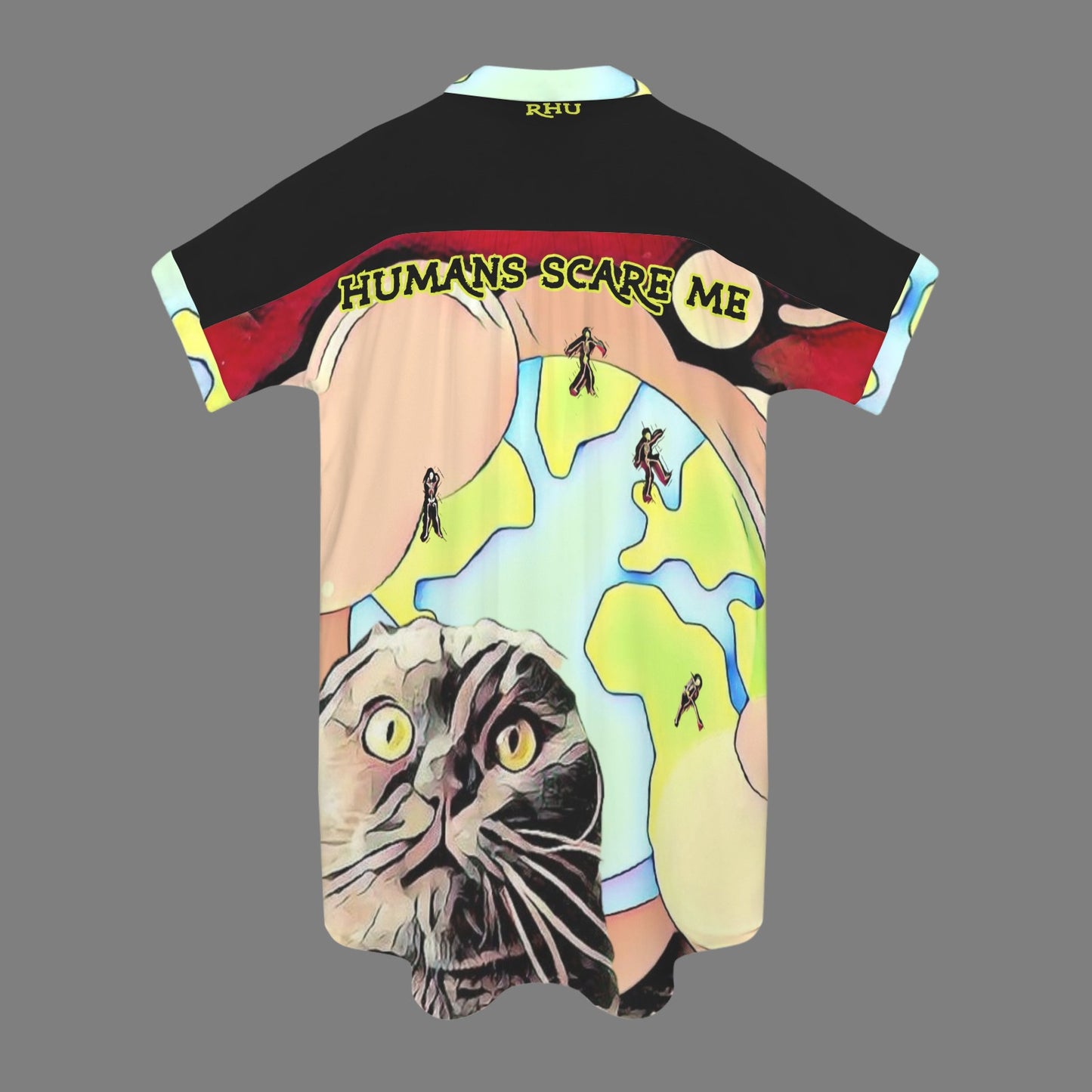 Humans Scare Me T-Shirt Dress Lapel Buttons (2 side print)