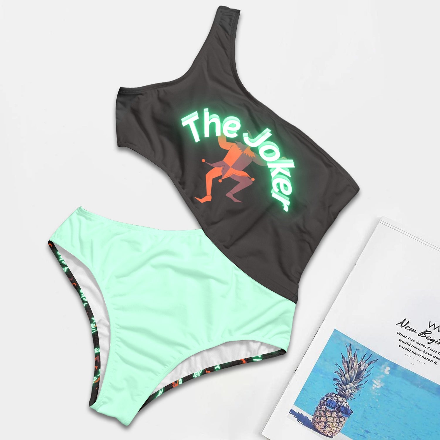 【Accessory Structure】One-shoulder one-piece swimsuit with side cutouts and soft chest pads.